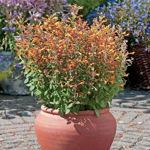 Reaching just 8 to 10 inches high and wide, this anise hyssop is small enough for containers, and makes an excellent companion to unscented plants of all kinds. Its long, slender stems and tubular blooms pair well with daisy-shaped flowers from gaillardia to gazania, and its upright, arching habit is a good contrast for mounding petunias and layered geraniums. In the border or container, Arizona Sandstone shows off.