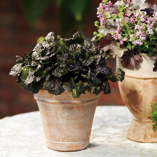 Black Scallop Bugleweed achieves its darkest leaf color in full sun, making it a superb choice for mixed container plantings, where it will trail over the sides of a planter. And unlike older varieties of ajuga, it is quite tolerant of variances in soil fertility and moisture levels. Tougher and more garden-worthy in addition to being most attractive, Black Scallop Bugleweed is the Ajuga your garden and containers deserve.