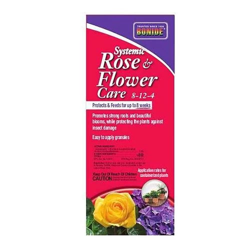 To use Bonide Systemic Rose and Flower Care, simply shake out the granules onto the ground, spreading them evenly around the plants’ roots, then water thoroughly. Each 2-pound container contains enough to treat 8 shrubs, 16 roses, or 96 square feet of flowerbed, and the fertilizer and pesticide both last for up to 8 weeks, encouraging healthy growth and big, beautiful blooms.
