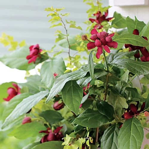 Calycanthus ‘Aphrodite’ Sweetshrub is a sheer pleasure year-round. A deciduous shrub with fragrant bark to carry you through the winter season, it also sports apple-scented blooms and bright green foliage. A heavy rebloomer, it is ignored by nibbling deer, frequented by butterflies, and gifted with the largest and most beautiful blooms in the family. Truly a “must have”.