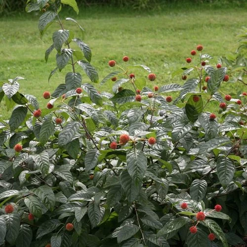 A Proven Winners® ColorChoice® Flowering Shrubs variety, a glorious dwarf selection of the Native American species, Sugar Shack® regales you with ever-changing color and interest. In addition to the knobby button-like red fruits for which it is named, it offers fragrant white blooms in midsummer, rich burgundy fall foliage, and a pleasingly rounded, symmetrical habit. Add to this its willingness to thrive in damp and boggy soils and its appeal to butterflies, and you have an all-around indispensable shrub for sun to partial shade.