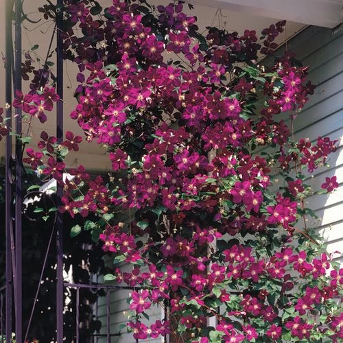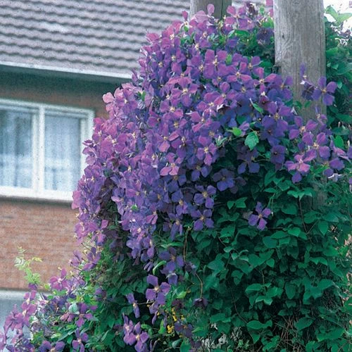 Cold Hardy and easy to grow, Clematis ‘Jackmanii’ prefers full sun to part shade and fertile, moist, well-drained alkaline soil. But it tolerates a wide variety of soils, including chalk, clay, and loams and that are acid or alkaline. Good site selection is key. So, remember the adage for success with clematis when planting: feet in the shade, head in the sun. The plant should be placed where the leaves get plenty of sunshine (approx. 6 hours), but the roots are shaded and kept cool, either by low-growing, evergreen shrubs or by heavy mulch. In hot, humid climates, some afternoon shade may be beneficial. Good drainage is important, and extremely wet locations should be avoided. Protect plants from strong winds but allow good air circulation. Deer resistant.