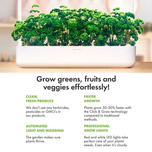Grow your favorite foods and flowers effortlessly 365 days a year with the fully automated Smart Garden 9. This self-sustaining indoor garden makes sure your plants get the perfect amount of water, light, oxygen, and nutrients; and optimum conditions create optimal plants with the freshest taste and fullest range of nutrients.