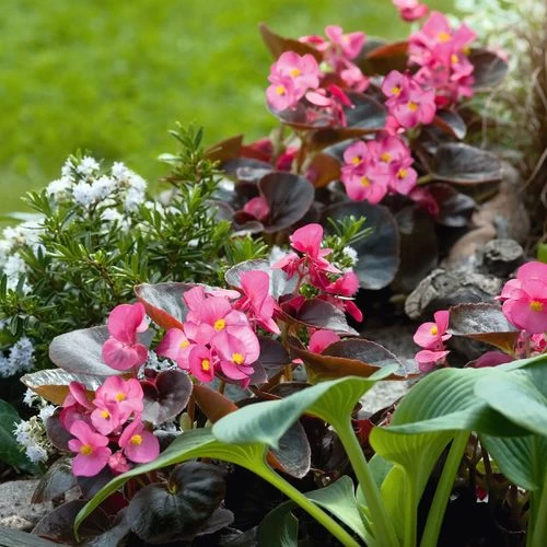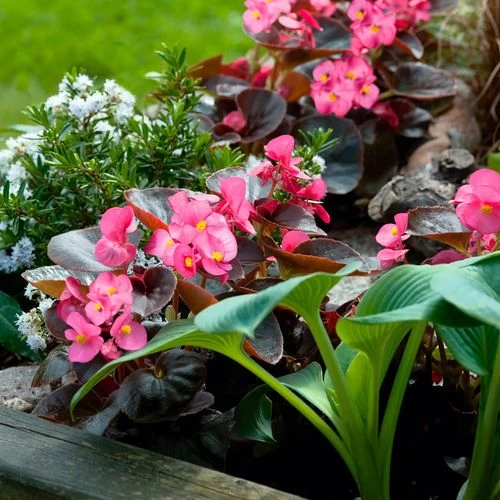 Typically grown as an annual, Cocktail™ Tequila Begonia, an F1 hybrid, is a tender perennial (winter hardy in Zones 10-11) offering summer through fall interest. Heavy- and ever-blooming, Cocktail Tequila blankets its thick, waxy, dark bronze leaves in loose clusters of dark pink flowers throughout the season. And the flowers are pollinator friendly.