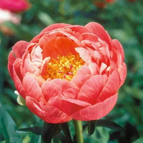 One of the few peonies to flourish in the southern end of its hardiness range, ‘Coral Charm’ Peony is an exceptionally robust garden plant, reaching 36 inches tall and covered with blooms. Its lovely foliage forms a nice backdrop for daffodils and a foreground for mid-to late-summer lilies.