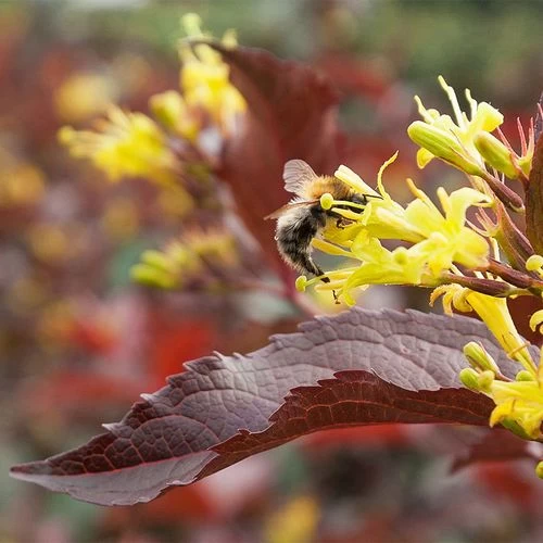 The dark burgundy plum foliage and bright yellow flowers of this bush proves once and for all that opposites really do attract. From spring into fall this beauty sets our little blossoms that are warmly yellow as a harvest moon. Butterflies and bees adore the flowers almost as much as gardeners appreciate its richly colorful foliage. The shades of chocolate, maroon, and deep purple really stand out in a sea of greenery and the colors become even more intense as the season fades. Best of all this perennial is native to the US so not only will it attract native pollinators, but it won’t run amok like many invasive species out there. Along with its good looks and tame personality, this diervilla is also quite deer-resistant and tolerant of dry terrain and dense clay soil. Grow this gorgeous and tough-as-nails plant and you’re sure to be impressed year after year.
