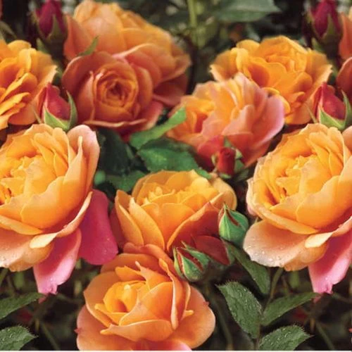 Glossy dark green leaves provide nice coverage and frame the blooms all season. Thanks to superior heat tolerance, Disneyland Floribunda Rose stays lush and leafy even in the hottest August weather. Just 3 feet high and 2 feet wide, Disneyland Floribunda Rose can be used as a front-of-the-border grouping, a low hedge, or a container standout.