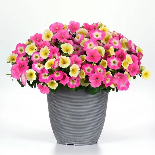 The improved petunia varieties in the E3 Easy Wave® Sweet Taffy Mix are tender perennials (Zones 10-11), often grown as annuals, offering spring through summer interest. Earlier blooming than typical Easy Wave® petunias, these E3 “Extra Easy Wave” practically perfect petunias set masses of showy, fragrant blossoms non-stop over a longer season. The plants create a stunning display as the pink and yellow blooms gracefully cascade from containers, window boxes, and hanging baskets. And the flowers attract butterflies and hummingbirds to the garden.