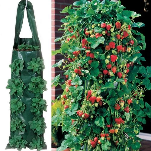 Plants grown off the ground boast cleaner fruit and foliage, with less loose dirt, pests, and disease. And your back will thank you at harvest time—no bending or stooping. The 10-hole pouch can be converted to a 2-sided planter by slitting 10 more holes in the back.