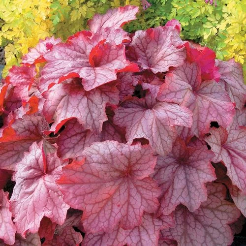 An absolute “must have” heuchera, ‘Georgia Peach’ astounds and delights with giant, rounded leaves of silvery peach with deep rose tints and prominent veining. It’s an understatement to say that this is an attention-getting plant; the only word that really describes it is “eye-popping”.