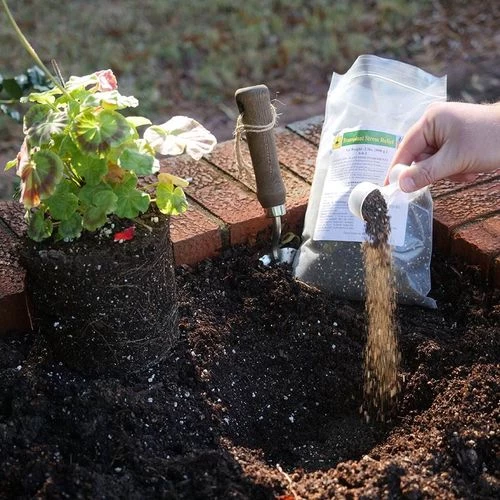 Used as a back-fill soil amendment to inoculate landscape plants when planted. It will “energize” the microbial activity in the ground and improves survivability, new root growth, flowering, water absorption, nutrient availability, and overall plant health. It also works to reduce mortality, fertilizer costs, pesticides usage, heat stress damage, irrigation frequency, and losses from drought.
