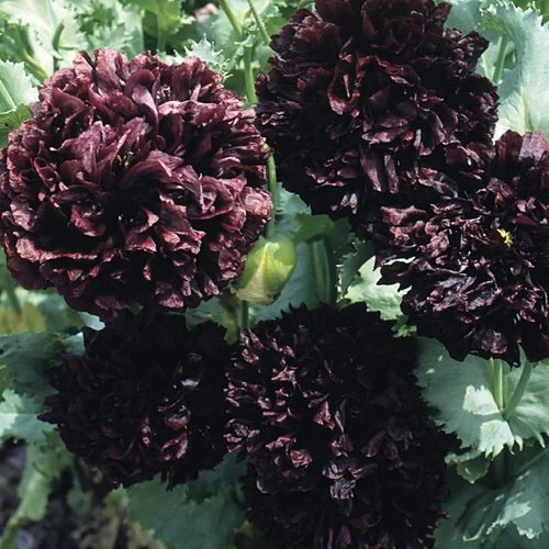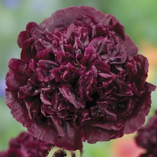Indescribably elegant, the blooms on Park Seed Black Peony Poppy (new peony-flowered poppy) are just incredible in a large garden planting or indoor arrangement. Fully 4 to 5 inches across, they are jam-packed with ruffled, whorled petals of deepest maroon, so dark that they appear black.
