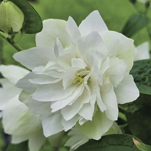 Philadelphus Pearls of Perfume is a flowering deciduous shrub offering 3 seasons of interest, blooming in late spring and reblooming reliably through summer. Borne along erect branches dense with medium green foliage, abundant clusters of large, pure white, fully double flowers perfume the air with an intense citrusy orange-blossom scent, attracting bees and butterflies. The long-lasting, sterile, sweet-scented flowers are a great addition to floral arrangements.