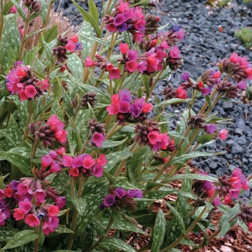 Raspberry Splash lungwort was bred from two popular Bethlehem sage varieties: Bertram Anderson and Leopard. Introduced in 2001, it has become an instant classic. It reaches 12 inches tall and 18 to 24 inches wide. Cut it back after the blooms pass for fuller, more dense foliage the rest of the season. Don’t miss out on this fine source of color for the shade garden.