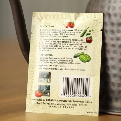 Each 30-gram pouch produces 250 quarts of solution. It is a growth enhancer containing 17 key amino acids and cytokinins, which absorb into plant cells and increase their productivity and strength. Use it in conjunction with a fertilizer for best results. You just won’t believe the power of this terrific seaweed.