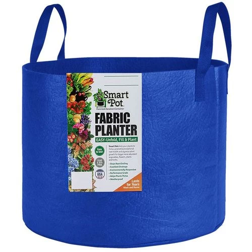 In case after case, plants grow faster in a Smart Pot than in traditional garden containers. And this 20-gallon Smart Pot planter in blue helps move moisture by capillarity – going from wetter areas to drier areas throughout the pot. So, no more garden soil with a crispy top and a soggy bottom. Add efficient oxygen circulation, excess heat release, and excellent water drainage and you have a completely contained garden perfect for small spaces that encourages seed, flower, and fruit growth.