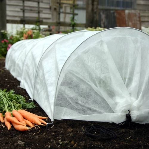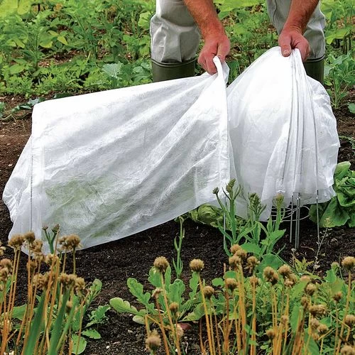 The Standard Fleece Easy Tunnel helps retain moisture and heat while keeping out all the features that destroy your crops, from rabbits and deer to carrot flies and aphids, not to mention frost, strong winds, and scorching summer heat. You can water right over it; the droplets will penetrate perfectly. And its so easy to use, because it’s all one piece: you just unfold it over your crop during the season, then pull it up and fold it flat when not in use.