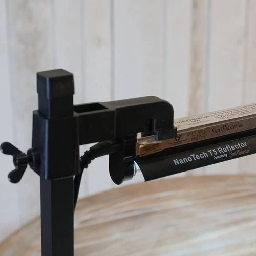 The SunbBlaster NanoTech Plant Light and Reflector Combo comes with a 39-watt, 36-inch T5H0 plant light complete with ballast and hood, plus a crystal reflector. The entire light fixture fits into the SunBlaster Universal T5 Light Stand.