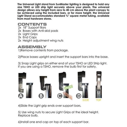 Use this Universal Light Stand with any of our SunBlaster Plant Lights (sold separately). It’s the perfect ‘frame’ for whatever length of light you need to grow your best garden ever. Each foot measures 13 inch x 3 inch.