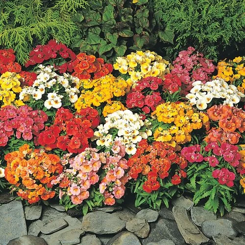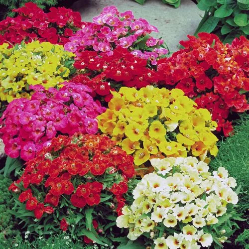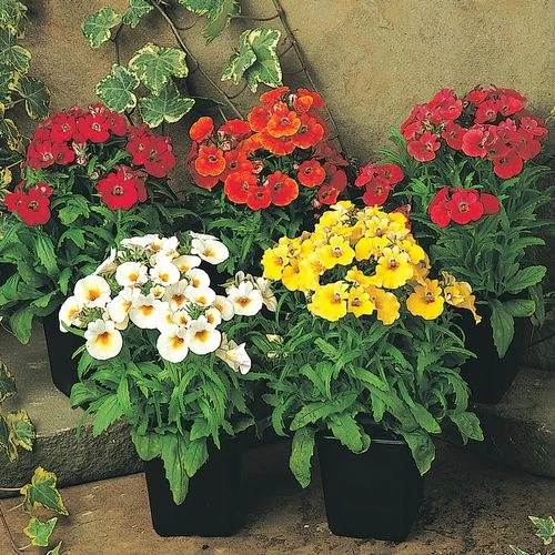The varieties in the Sundrops Mixture Nemesia are brightly colored cool-season annuals that typically bloom early to mid spring, accompanying spring pansies. In mild climates, they may bloom from late spring to the first frost. Compact and uniform, the plants set a profusion of orchid-like blooms in strong, brilliant shades of golden yellow, clear pink, sunset red, flaming orange, and creamy white, with a wide array of patterns. Long-lasting, the fragrant flowers sustain bees, butterflies, and birds.