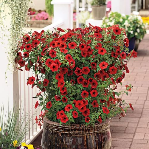 Say hello to a new superstar. Red Velour has nabbed every top seed award in the world, and now it is ready to sashay into your garden. This amazing Tidal Wave Petunia is spreading, but it can also mound up and fill the available space like a champ. It’s the tallest of the Wave family, and of course no other color has its rich intensity, its velvety darkness. Add to this a few of its other many meritsit’s fade-proof and highly resistant to Botrytis, just to name a coupleand you can see why plant judges and gardeners are falling all over themselves to sing its praises. Join the chorusRed Velour is simply incredible.