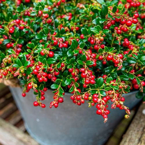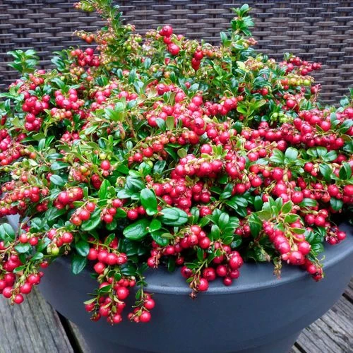 Vaccinium ‘Red Candy’ Lingonberry has a compact, low-growing, mat-forming habit, growing just 8 inches tall and 10 inches wide, that makes a gorgeous ground cover. Although it is an excellent container or specimen plant, it is shown to best effect when massed in the garden or landscape.