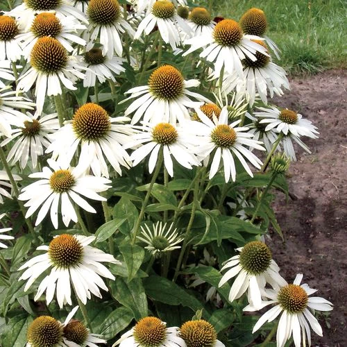 White Swan Coneflower is marvelously floriferous, and the scent evokes a summer day in the country. The pure white blooms are 4 to 5 inches wide, their hue accentuated by the large, knoblike golden-brown cones, which bring in the butterflies and bees and, after the very long bloom season has passed, are superb for drying and using in Everlasting arrangements.