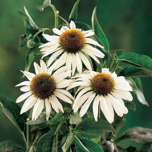 These long-stemmed, bushy White Swan Coneflowers reach 2 feet tall, holding their blooms overhead like gay umbrellas on very sturdy stems from late spring till the cool temperatures of fall set in. Superb for a large planting anywhere, White Swan Coneflowers show to particular advantage in the back of the border, drifting across a perennial bed, or in any naturalized woodland or meadow setting.